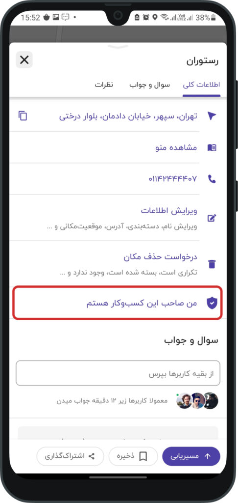 برای درخواست مالکیت، باید ابتدا اپلیکیشن بلد را باز کنید و سپس رستوران یا کافه خود را بر روی نقشه جستجو کنید. اگر از قبل توسط مشتریانتان ثبت شده باشد میتوانید آن را ببینید. در غیر این صورت، خودتان میتوانید رستوران یا کافهتان را به نقشه اضافه کنید. سپس با استفاده از دکمه “من صاحب این کسب وکار هستم” وارد فرایند ثبت ادعای مالکیت شده و با وارد کردن شماره ثابت رستوران یا کافهتان، در کمترین زمان مالکیت کسب و کار خودتان را در نقشه تجربه کنید!