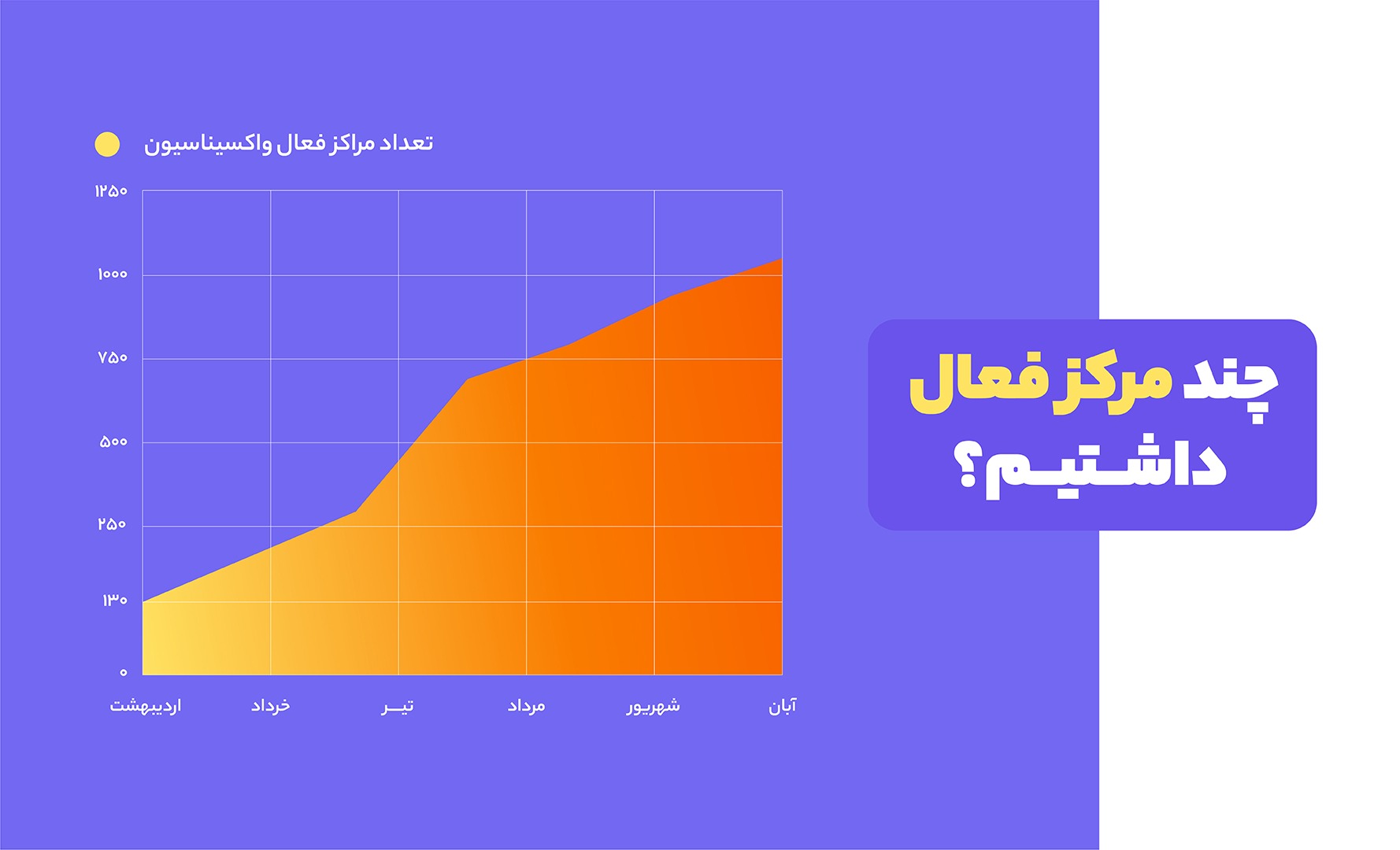 همزمان با شروع واکسیناسیون عمومی در اردیبهشت ماه ۱۴۰۰، مراکز بهداشتی را که امکان تزریق واکسن کرونا داشتند روی نقشه نمایش دادیم. در خرداد ماه با اضافه شدن مراکز تجمعی واکسیناسیون، امکان مشاهده آنها را روی نقشه اضافه کردیم و با توجه به میزان مراجعه کاربران و اهمیت در نظر گرفتن فاصله اجتماعی از یک سو و سرعت بخشیدن به فرآیند واکسن، میزان شلوغی هر مرکز را هم به اطلاعات موجود در هر مرکز اضافه کردیم.