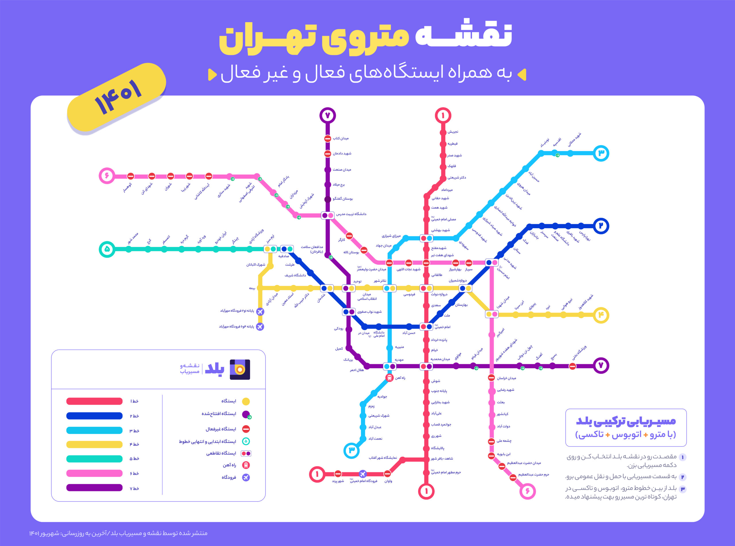 نقشه مترو تهران روی نقشه بلد در سال 1401