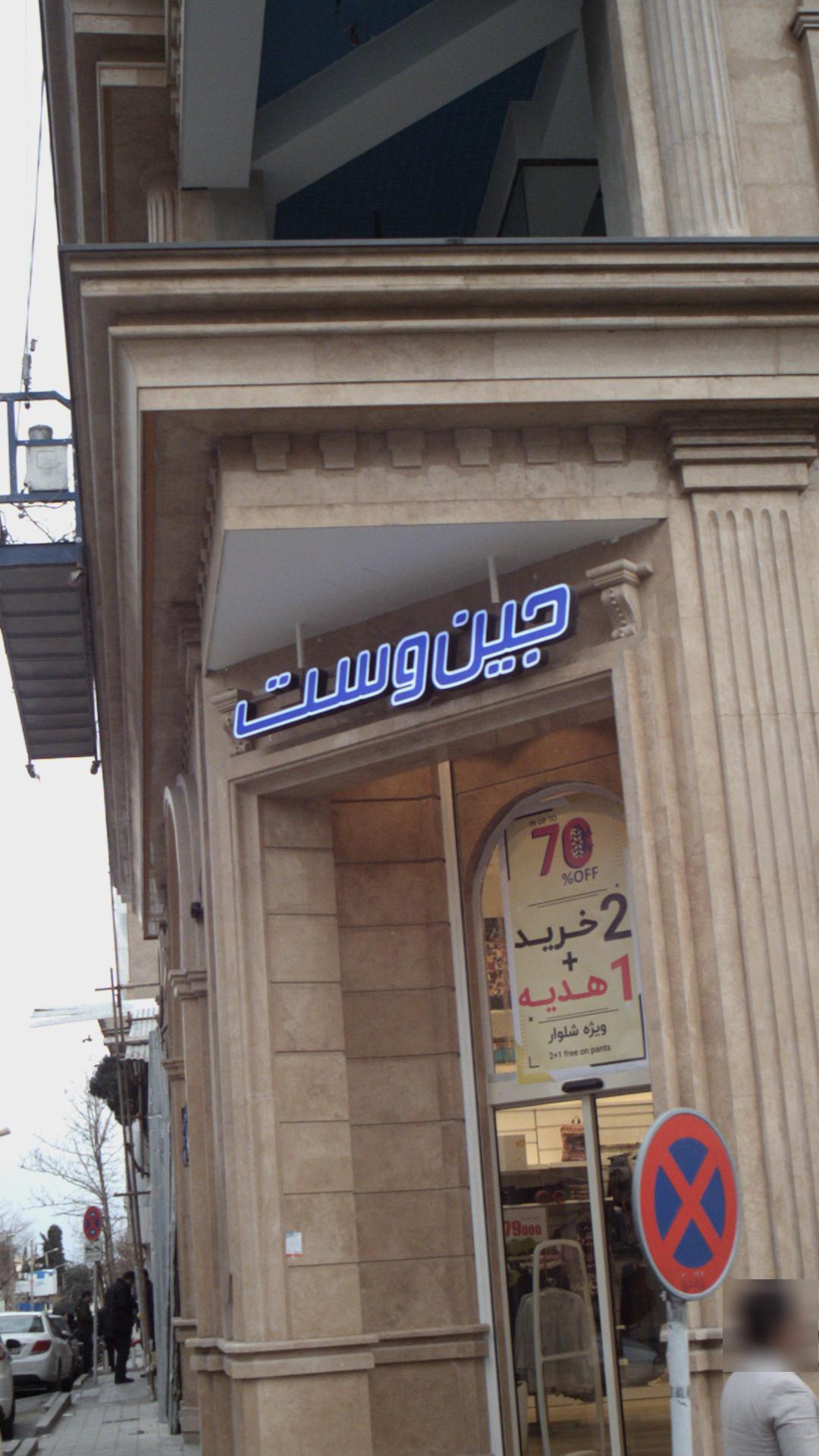 جین وست در محله امانیه تهران و در بلوار نلسون ماندلا واقع شده است. از لحاظ موقعیت جغرافیایی این مکان در نزدیکی مراکزی مانند پمپ بنزین جردن شماره ۱۴۷ و بیمارستان کودکان علیاصغر و رستوران شاندیز و کلینیک نور و کلینیک چشم پزشکی نور قرار گرفته است. نزدیکترین ایستگاه اتوبوس به این مکان، ایستگاه اتوبوس بلوار صبا میباشد که دسترسی به این مکان را برای کاربران حملونقل عمومی آسان میسازد. همچنین در برنامه بلد کاربران امتیاز ۲٫۵ از ۵ را به این مکان دادهاند.