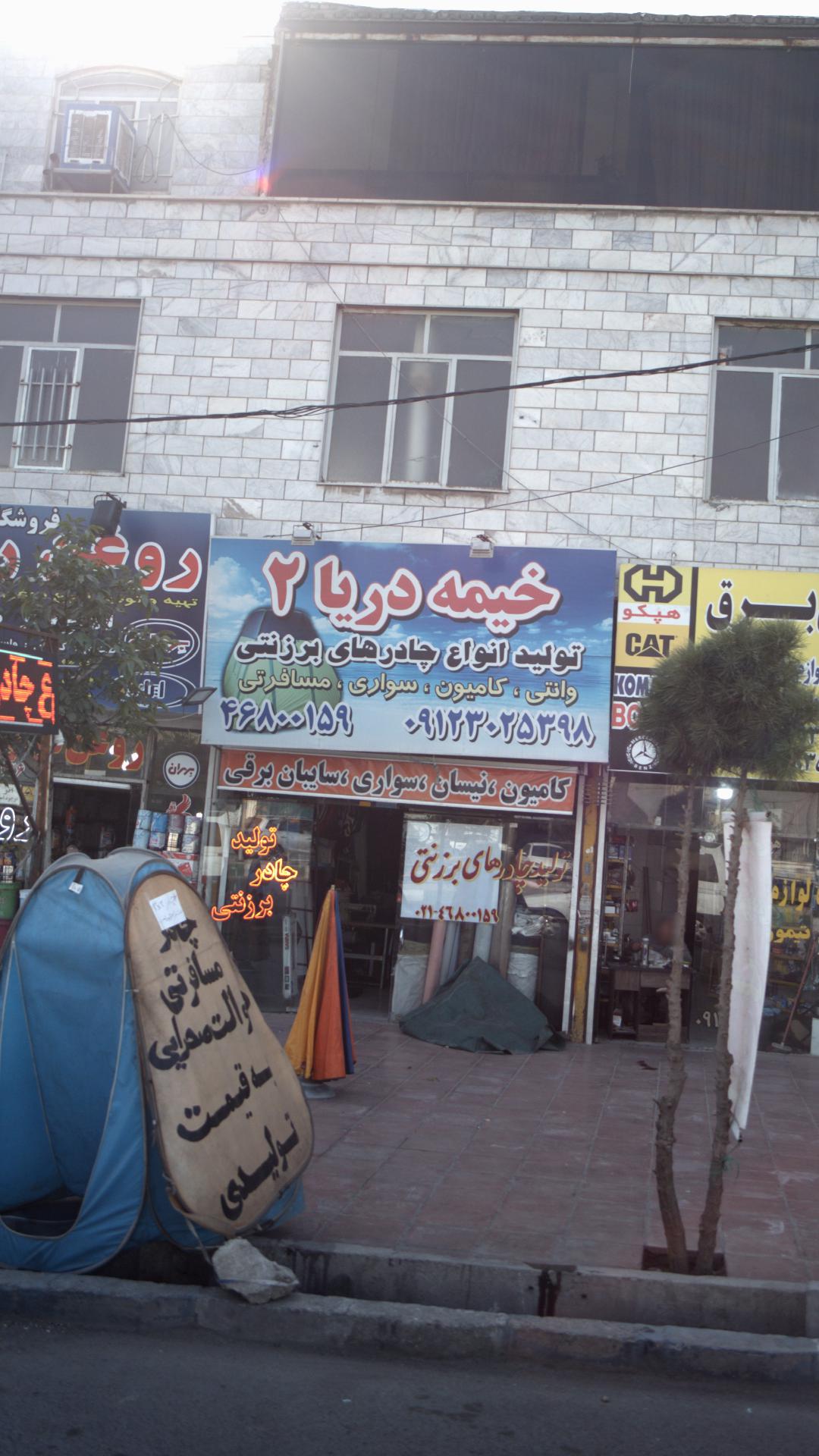 خیمه دریا 2 - تولید انواع چادرهای برزنتی در اندیشه و در شهرستان کرج،جاده کرج واقع شده است. از لحاظ موقعیت جغرافیایی این مکان در نزدیکی مراکزی مانند مرکز بهداشت هفت جوی و مجتمع امیر کبیر و فروشگاه جهان ابزار و دیزی سرای هفت جوی و فلافل سلف سرویس مامان جون شعبه هفت جوی قرار گرفته است.