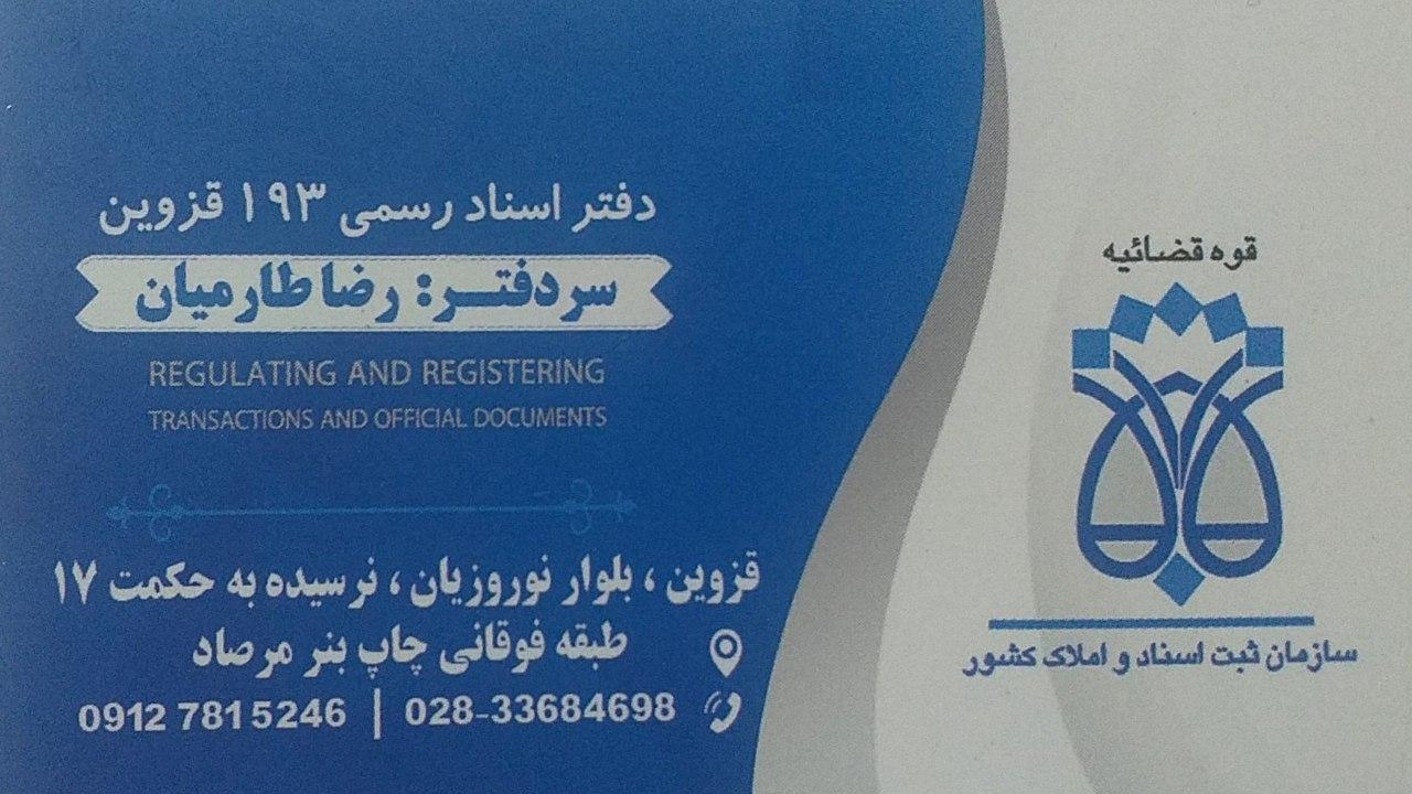 دفتر اسناد رسمی ۱۹۳ قزوین (رضا طارمیان)