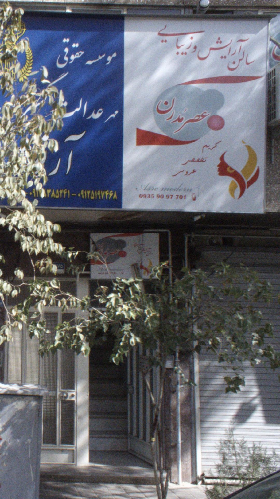 سالن آرایش و زیبایی عصر مدرن در محله پرستار تهران و در خیابان پیروزی،خیابان نبرد واقع شده است. از لحاظ موقعیت جغرافیایی این مکان در نزدیکی مراکزی مانند نیکوتن پوش شعبه چهارراه کوکاکولا و مجتمع تجاری کساء و مرکز خدمات جامع سلامت شهری صفدری و بوستان پرستار و بوستان گل نما قرار گرفته است. نزدیکترین ایستگاه مترو به این مکان، ایستگاه مترو نبرد و نزدیکترین ایستگاه اتوبوس به این مکان، ایستگاه اتوبوس سیزده آبان میباشد که دسترسی به این مکان را برای کاربران حملونقل عمومی آسان میسازد.