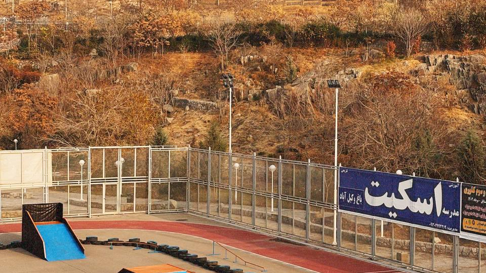 انتهای خط مترو ورودی باغ وکیل آباد بسمت پارک ازمیدان ملک پارکینگ اول سمت چپ نزدیک برج نگهبانی از پله ها ی سمت راست پارک وارد شده بسمت پایین و پیست اسکیت