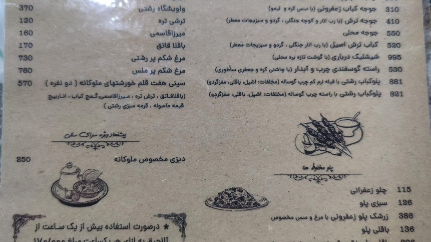 *************اصلا خوب نیست************** برخلاف کیفیت پایین قیمت خیلی بالایی هم داره سوپ سفارش دادیم : کاملا مشخص بود بعد از چند روز سوپ رو مجددا داغ کرده بودن و تازه نبود و آوردن بسیار طعم مونده میداد کباب ترش سفارش دادیم : کاملا سفت و قابل جویدن نبود همراه کباب ترشی کلم قرمز دورچین گذاشته بودن که اونم اینقدر مونده بود خشک شده بود و رنگش عوض شده بود به هیچ عنوان این رستوران رو پیشنهاد نمیکنم قطعا رشت جاهای بهتری داره برای غذای با کیفیت ممنون