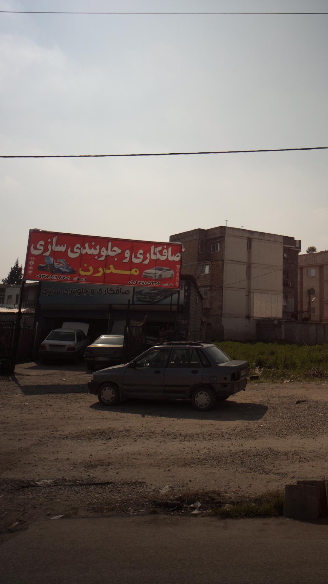 صافکاری و جلوبندی سازی مدرن در محله ساری قائم شهر و در بلوار سادات نیا واقع شده است. از لحاظ موقعیت جغرافیایی این مکان در نزدیکی مراکزی مانند شیشه اتومبیل هاشمی و اگزوزسازی قانع و تراشکاری صالحی و لوازم یدکی و سالن ورزشی جهان پهلوان امامعلی حبیبی قرار گرفته است.