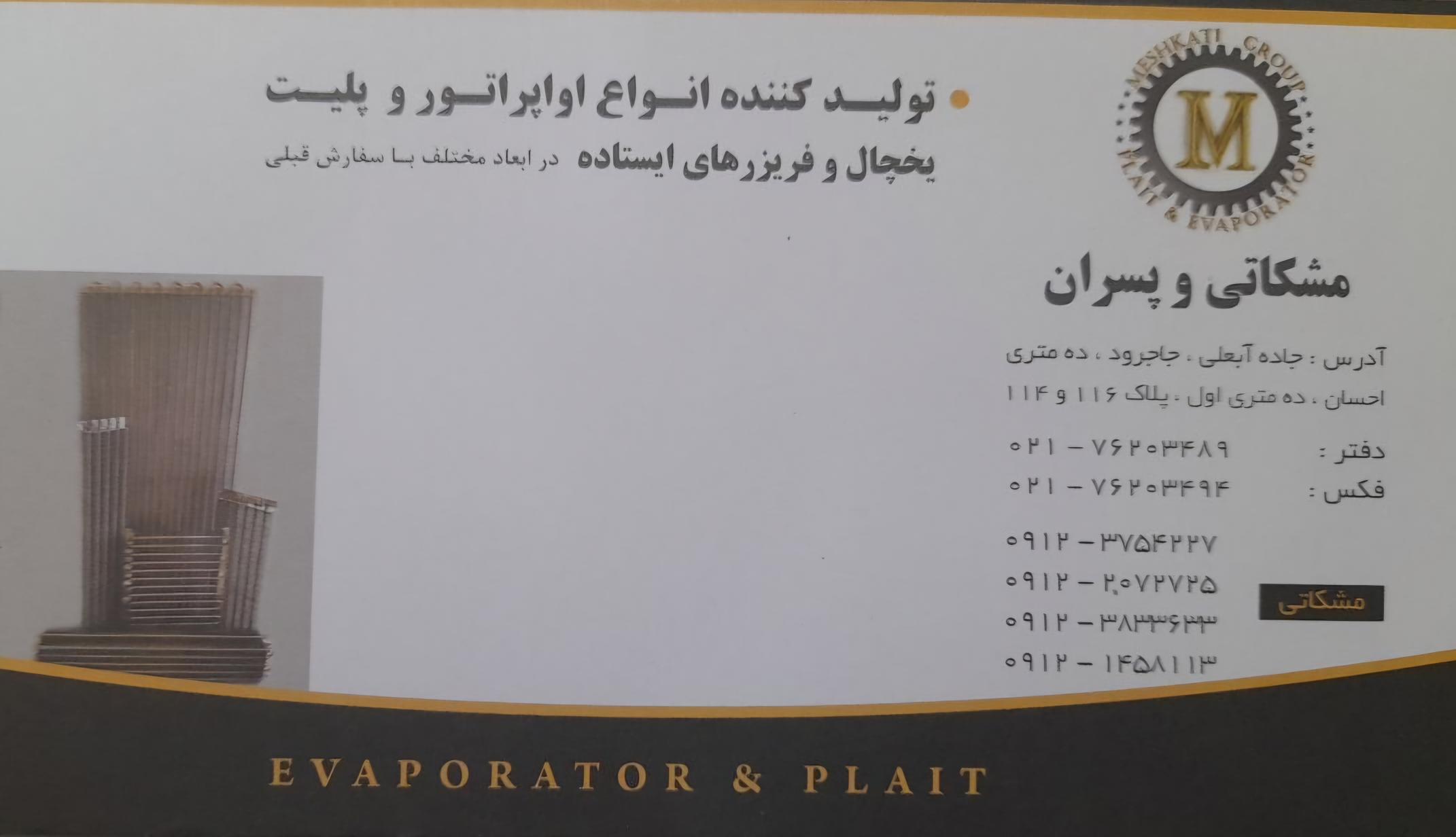 تصاویر گروه تولیدی و صنعتی مشکاتی تولید اواپراتور یخچال های صنعتی